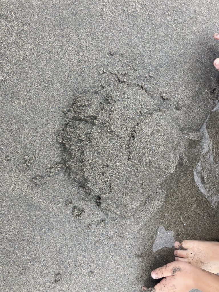 私は田舎に住んでいるので自然の遊び場には事欠きません。今回は二人の子どもと車で15分ほどの海水浴場に行きました。ですので、わざわざ海に遊びに行ったというより「ちょっとそこまで」の外出です。